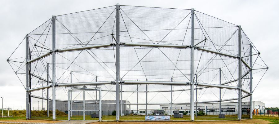 Auch wenn die feierliche Einweihung des Drohnenkäfigs so etwas wie den vorläufigen Schlusspunkt der Flybots-Entwicklung darstellte, ist das runde Testareal mit 45 Metern Durchmesser und 13 Metern Höhe ein vergleichsweise unspektakuläres Bauw…