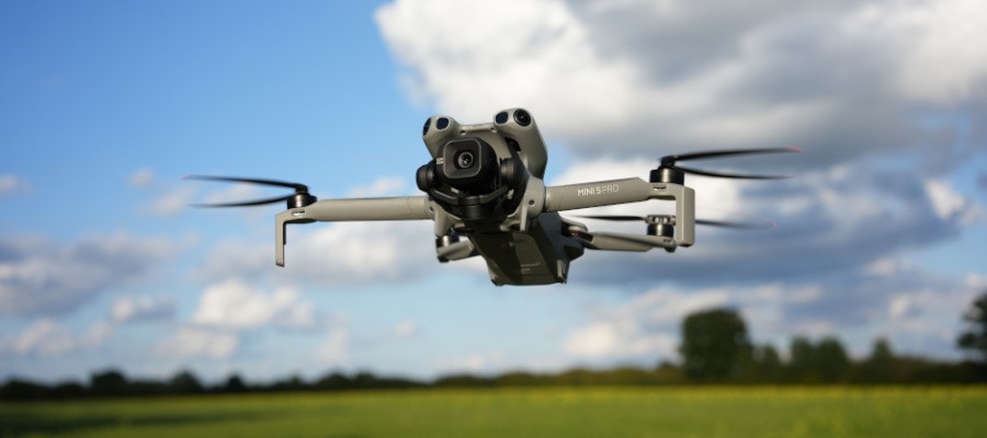 Die Mini 5 Pro überzeugt mit der von DJI gewohnt kompakten, handlichen Bauweise. Diese Eigenschaften machen sie zum geeigneten Werkzeug, sowohl für spontane Einsätze und flexible Arbeitsabläufe, wenn Agilität entscheidend ist, als auch für