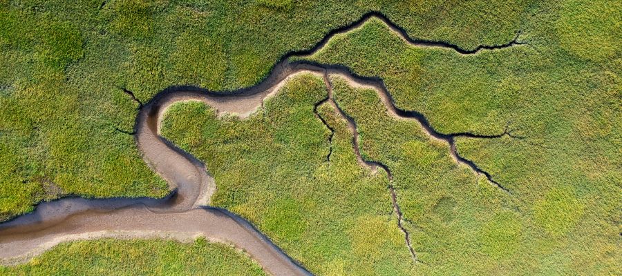 Wie eine Baumgestalt mit feinen Ästen wirkt dieser Fluss aus der Drohnenperspektive