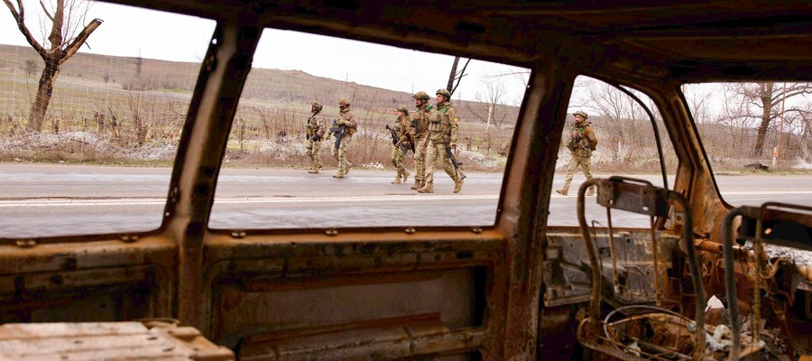 Doch für Ritter-Romantik ist in der vom Krieg gezeichneten Gegend kein Platz. Entlang der Straße reihen sich Stacheldrahtrollen aneinander. Über den Köpfen der Soldaten sind Netze gespannt, die zumindest einen gewissen Schutz bieten. Doch in den Netzen finden sich immer wieder Löcher und Risse, die von russischen Kamikazedrohnen verursacht wurden. Die Kämpfer marschieren durch die sogenannte Todeszone. Diese erstreckt sich von der Front bis zu 20 Kilometer tief ins Hinterland. Russische Grad-Raketen schlagen hier genauso ein wie Gleitbomben und Artilleriegranaten. In der Luft surren Kamikaze-Drohnen, die Jagd auf alles machen, was sich bewegt.