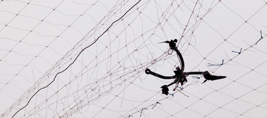 Wie im Spinnennetz: Eine russische Drohne hat sich in den Schutznetzen verheddert