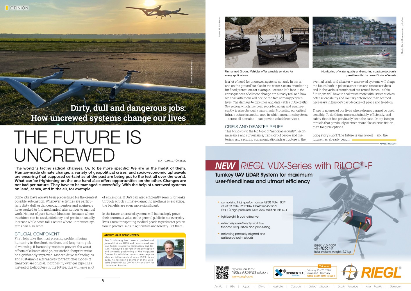 Drones is the magazine for the drone industry and a leading source of information for everyone seeking to follow the current developments around the commercial use of uncrewed technology in Europe and beyond. In cooperation with Messe Düsseldorf, there will be an English language Drones Special Edition at XPONENTIAL Europe. The magazine will be distributed free of charge at the venue fair, which is a brilliant opportunity for you to bring your products and services to the center of interest and attract future partners and customers to your booth. Long story short: It’s your chance to extend your success at XPONENTIAL Europe.
